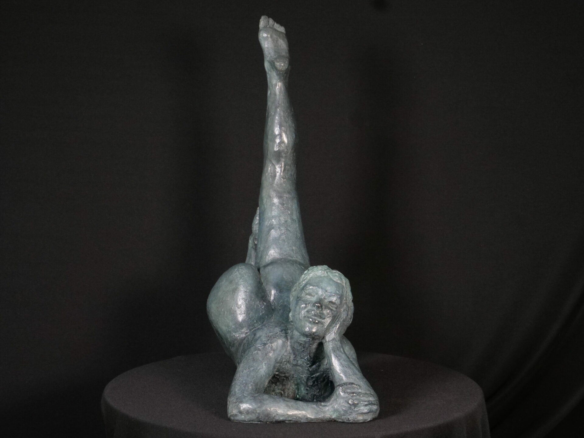 C’est la troisième et dernière œuvre de la série des « acrobates » réalisées avec le même modèle début 2020. Beaucoup de mouvement, de la malice…la pose n°3 nous ravi et nous met de bonne humeur par son expression réjouie !