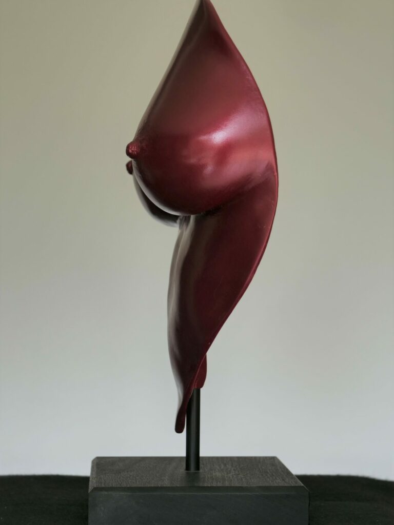 Œuvre unique en résine acrylique, laquée rouge polyuréthane.