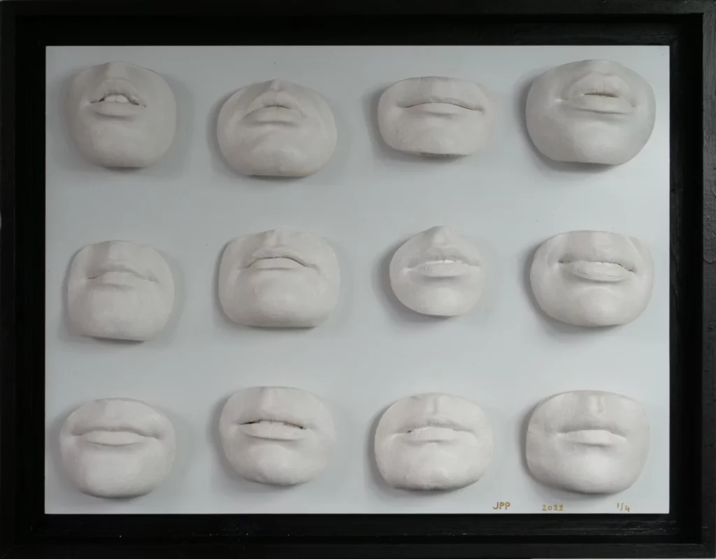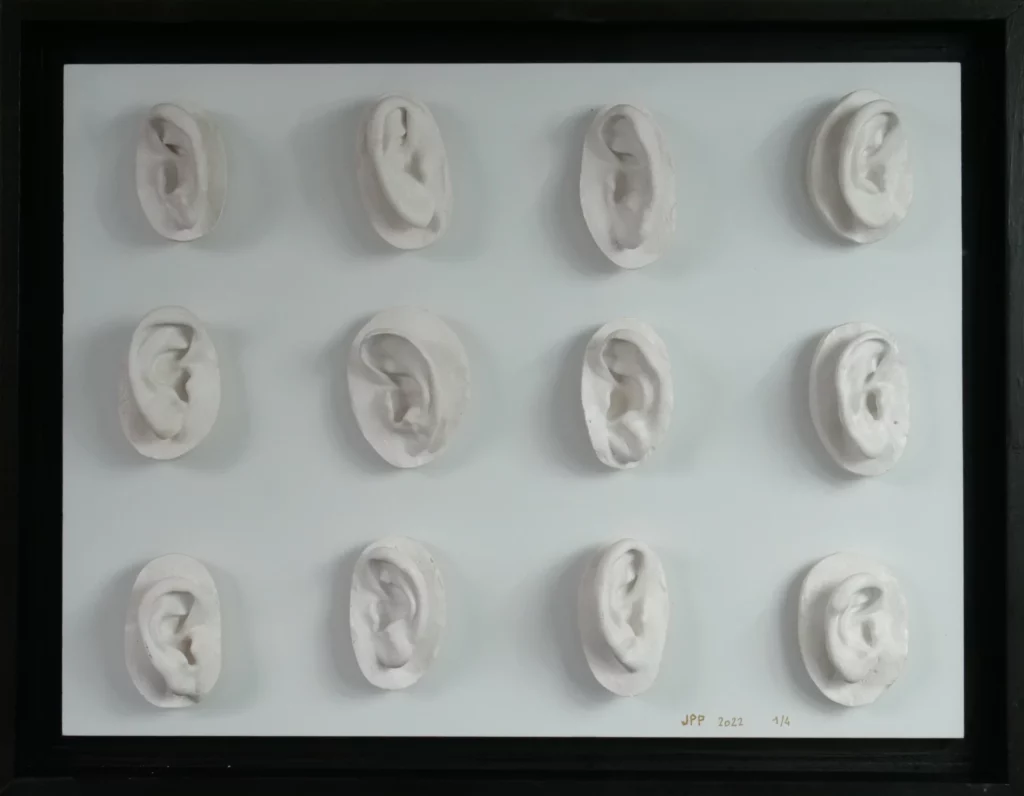 Cette œuvre met en scène douze bouches et douze oreilles de femmes différentes obtenues par moulage à l’élastomère silicone. Merci à Cléo, Laure, Camille, Eileen, Eloïse, Samia, Shaïna, Jeanne, Gwendoline, Clara, Katie et Louma pour leur participation à la création de ce tableau drôlatique et vivant.