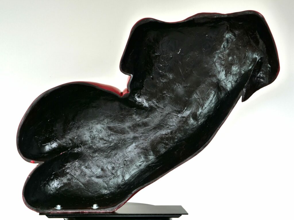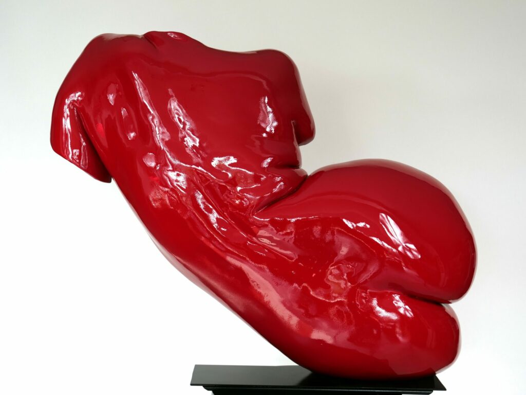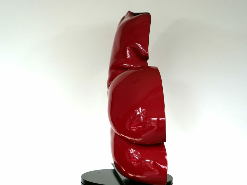 Une belle plénitude des formes, une laque polyuréthane rouge.