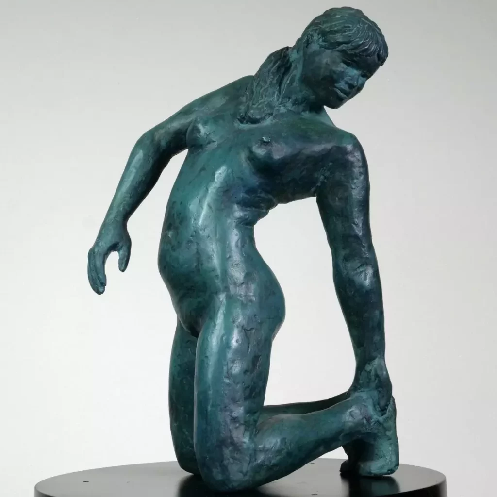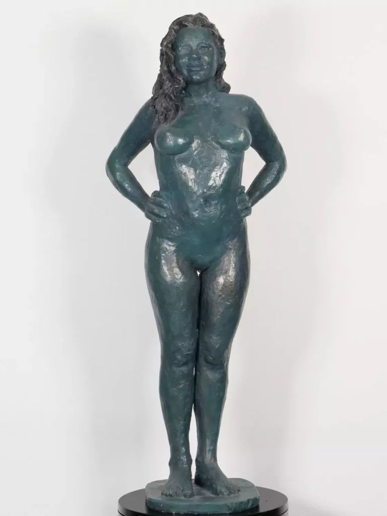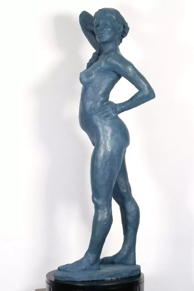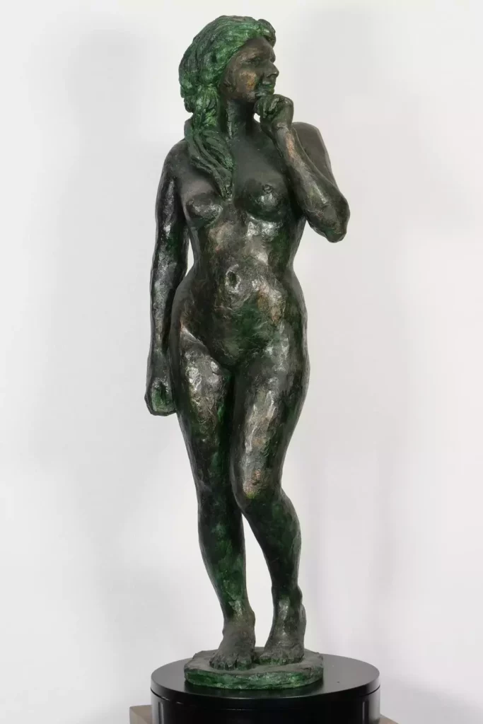 Gwendoline debout 2023Plâtre, patine, acier – H 85 cm x L 30 cm x P 26 cm